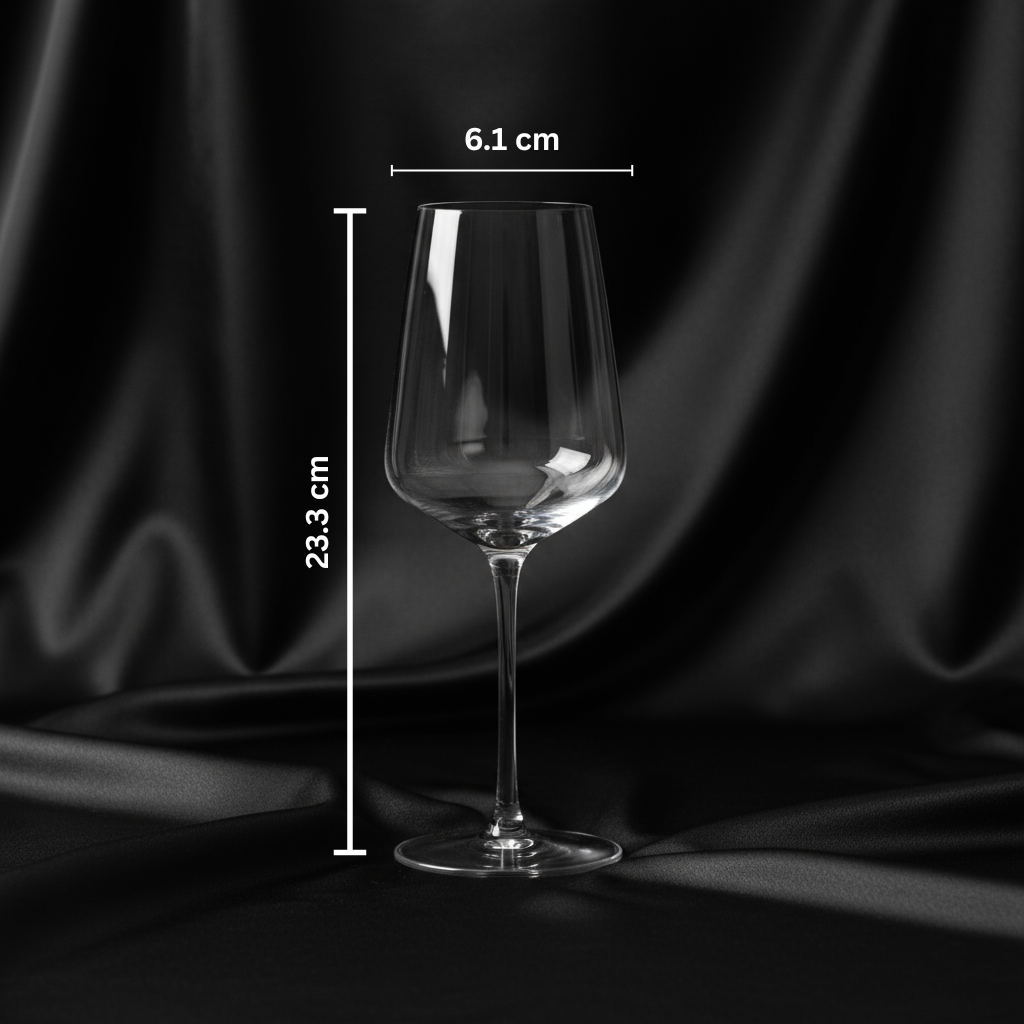 Jedes Glas fasst 420 ml, ist 23,3 cm hoch und 6,1 cm breit – ideal für Rotwein, Weisswein oder auch Schaumwein.