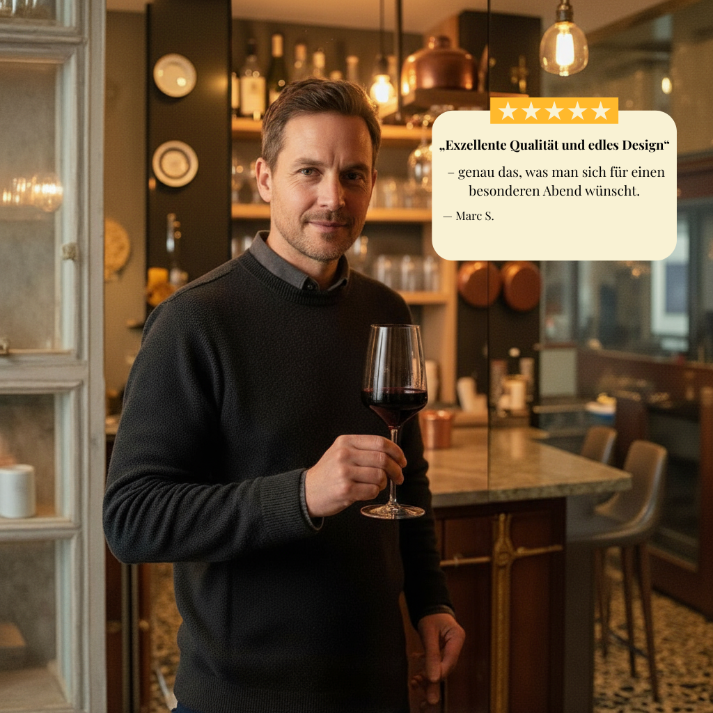 Unsere Gläser sind aus hochwertigem, bruchsicherem Kristallglas gefertigt – elegant, robust und frei von Schadstoffen.